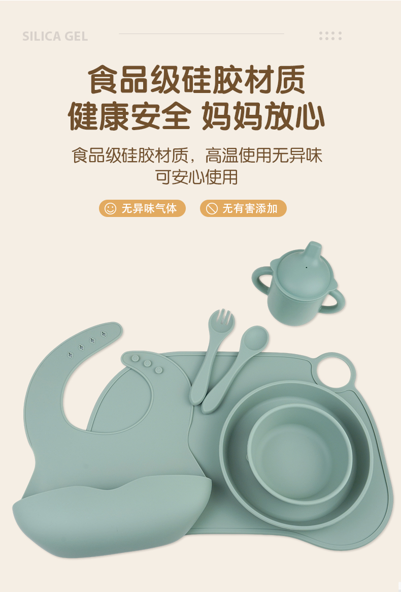 您的位置:首頁 > 產品中心 > 硅膠嬰童用品 > 硅膠圍兜吸盤碗大勺子可水煮食品級母嬰硅膠喂養餐具套裝